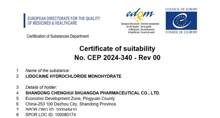 We submitted the CEP application for Lidocaine Hydrochloride to the EDQM in July 2024 and secured this approval in November 2025. This marks the fifth CEP certificate granted to our company this year. Our company has already submitted registration applications for multiple products in various countries, including those in Europe and the US, with several having received approval. In the future, we will continue expanding international registration efforts for more of our products.